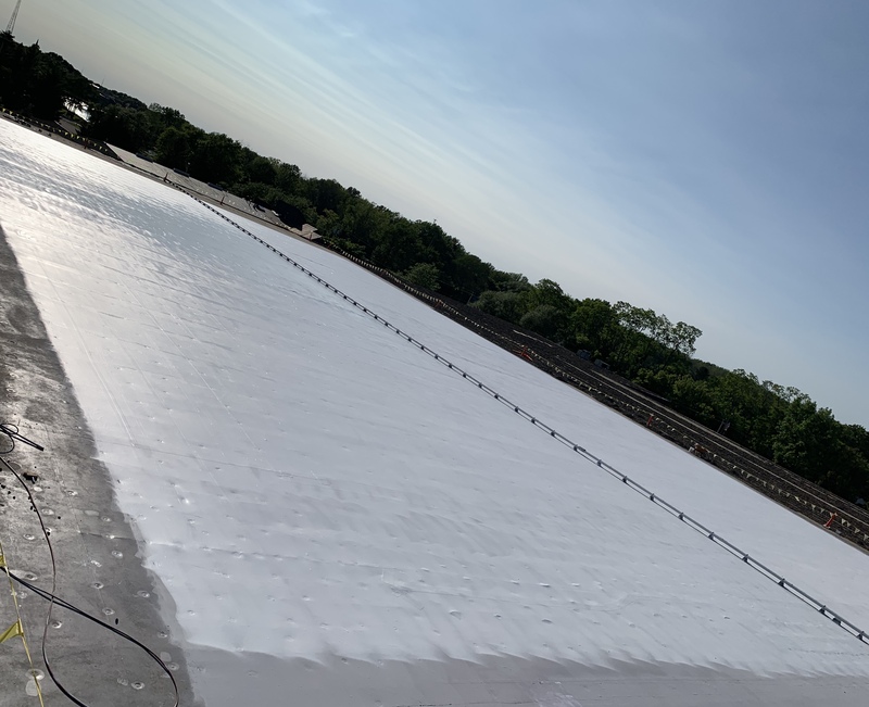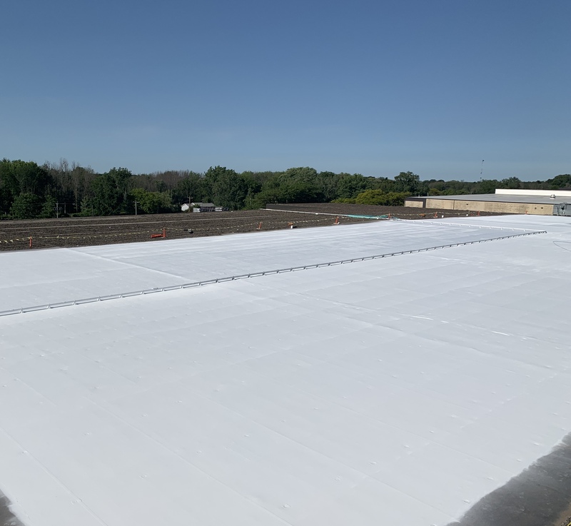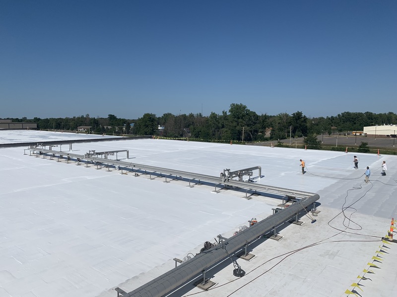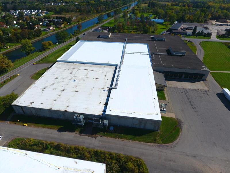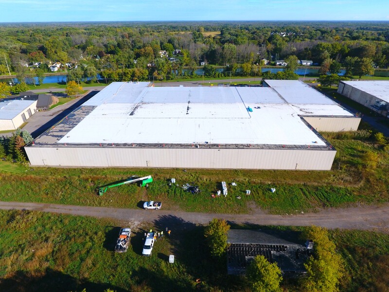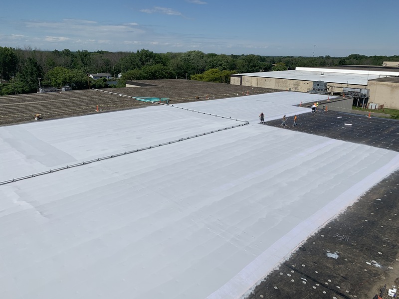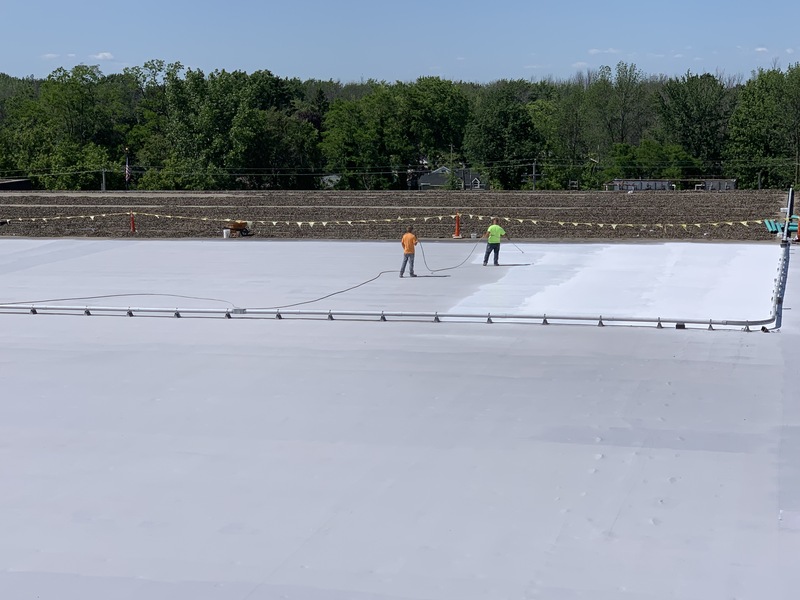 Fluid applied roof restoration over a balasted EPDM roof system. (next to Eerie Canal)